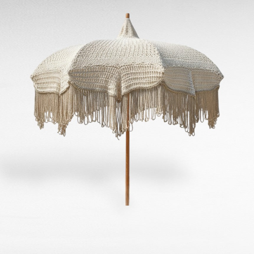 Crochet Rope Sun Umbrellas | Chora Barefoot Luxury Living - Mykonos Island Sun Umbrellas Embrace the sunny elegance of Mykonos with our exquisite Crochet Rope Sun Umbrellas from Chora Barefoot...