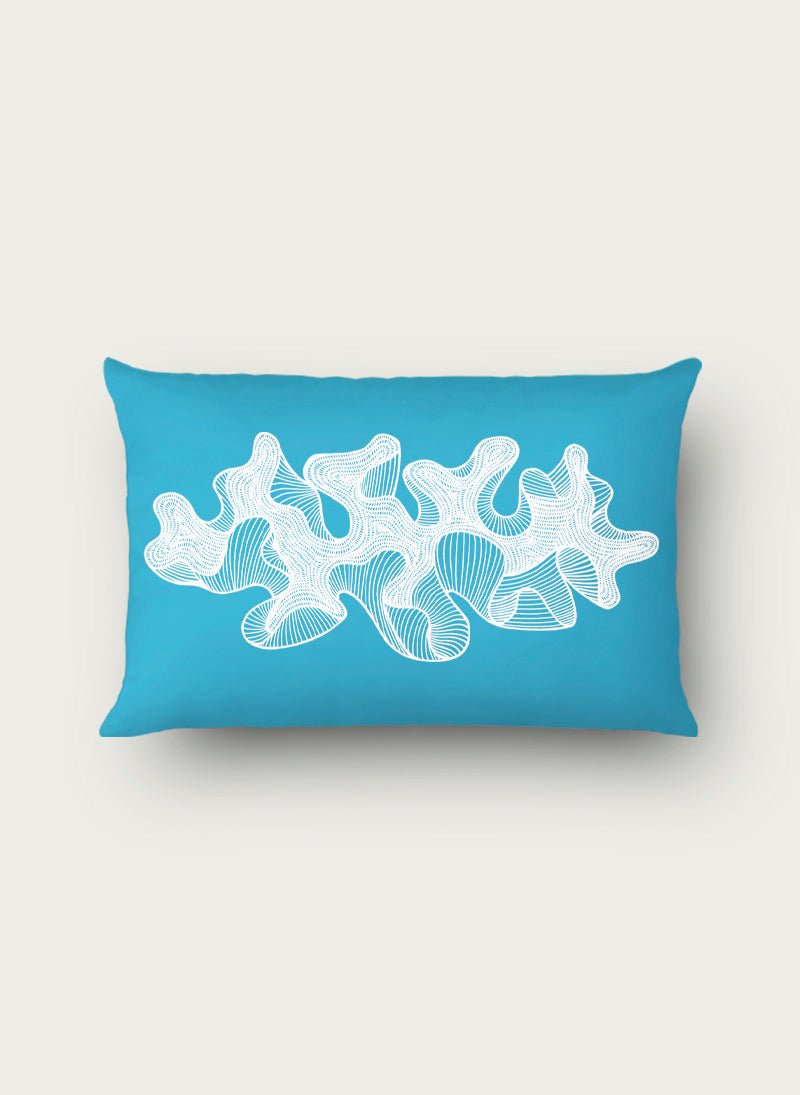 A striking cotton cushion in bold turquoise, inspired by the organic forms of the Alcyoniidae coral family. Perfect for adding a vibrant, coastal touch to any interior setting.