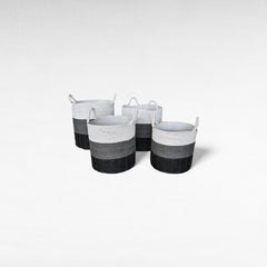 Organize in style with the Synthetic Rattan Basket Set of 4. Featuring a blend of grey, white, and black, these versatile storage baskets are perfect for adding a modern touch to any space.