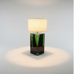 Illuminate Your Space with Elegance Introducing the exquisite Black Teak Square and Green Resin Table Lamp—a perfect blend of modern design and natural beauty. This stunning table lamp is not just a source of light but a statement piece that enhances the aesthetic of any room.