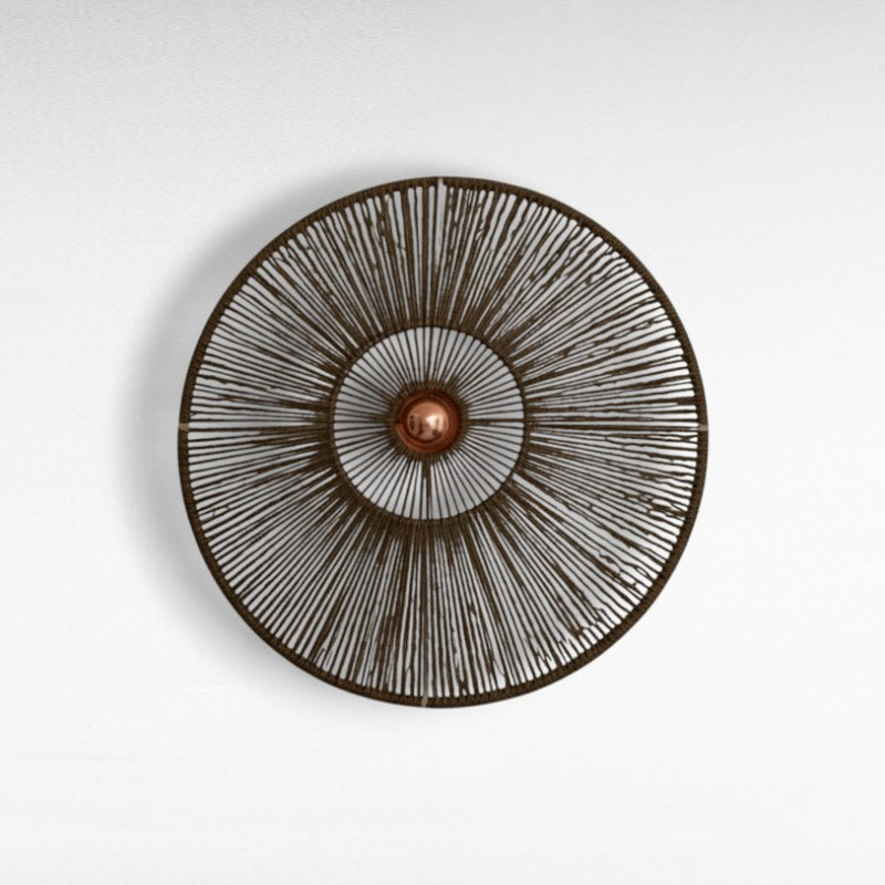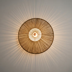 Bring warmth and natural texture to your walls with this stunning organic wall lamp. Woven cotton rope wraps around a sleek metal frame, creating a sculptural piece that doubles as functional lighting. At 140cm diameter with 20cm depth, it makes a bold architectural statement while casting a soft, inviting glow. Perfect for minimalist interiors or bohemian spaces, this eco-conscious fixture seamlessly blends artisanal craftsmanship with contemporary design, transforming any room into a sanctuary of understated elegance.
