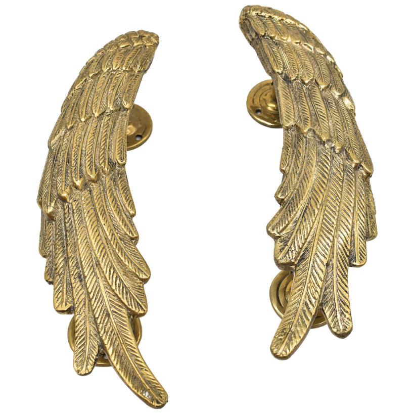 SET OF 2 WINGS DOOR KNOBS BRONZE GOLD SMALL 25x5x5