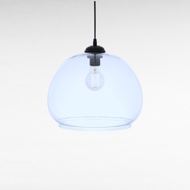 Elevate your space with this sleek, modern pendant light featuring a smooth, transparent light blue glass dome and exposed filament bulb. Suspended from a matte black cord and socket, its clean silhouette blends effortlessly into industrial, contemporary, or Scandinavian interiors. Perfect for kitchens, dining areas, or boutique settings, it casts a warm, ambient glow while showcasing the beauty of simplicity.