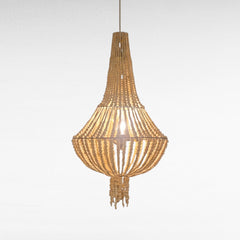 A sculptural cascade of warmth and elegance, the Teardrop Bead Chandelier is composed of finely hand-strung wooden beads that descend in graceful arcs from a central metal frame. Its symmetrical silhouette evokes the softness of falling water or woven jewelry, while the natural wood finish adds organic texture and artisanal charm.