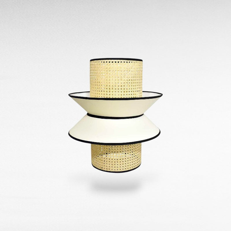 Off White & Black Fabric and Rattan Lamp Shade