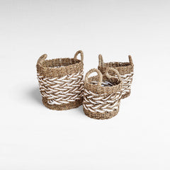 BASKETS GRASS NATURAL & WHITE SET OF 3