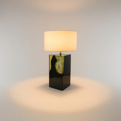 BLACK TEAK SQUARE TRANSPARENT RESIN TABLE LAMP