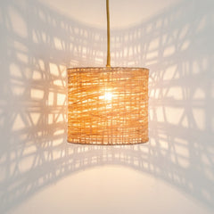 Handwoven from dried grass strands, this cylindrical pendant lamp casts a warm, ambient light through its open lattice weave. Its clean silhouette and raw texture bring organic elegance to coastal, bohemian, or earthy interiors—where simplicity meets soul.