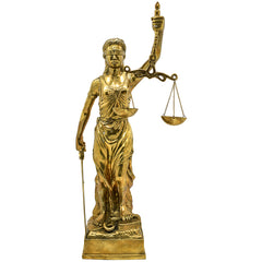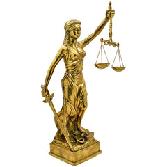 Cast in brass and finished in metallic gold, this piece adds a symbolic and elegant touch to law offices, libraries, or formal interiors.