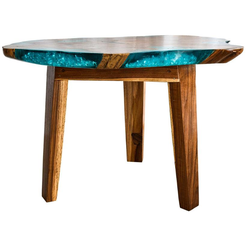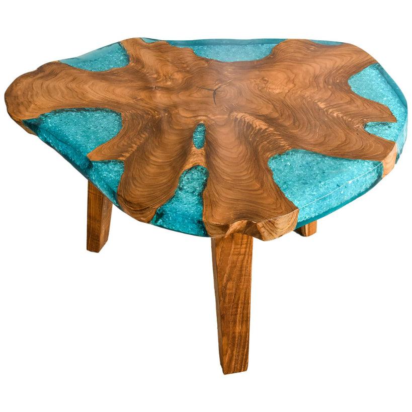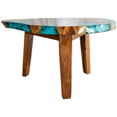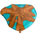 - Unique Design: Each table is handcrafted, showcasing distinctive grain patterns of teak wood paired with mesmerizing blue resin, ensuring no two pieces are alike.