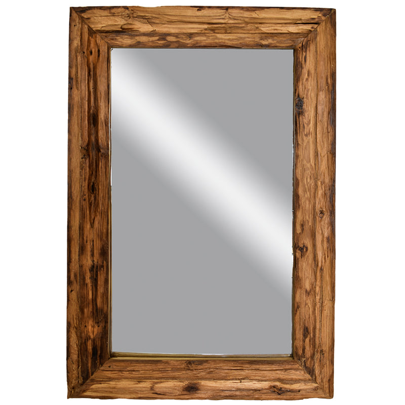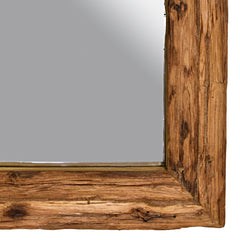 Wall mirror with a solid teak wood frame, handcrafted to showcase the natural grain and texture of the wood.