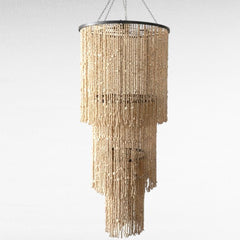 Finished in a soft bleached tone, the beads evoke coastal calm and natural refinement. Suspended by a chain, this chandelier casts ambient light through its layered beadwork—ideal for vaulted ceilings, spacious dining rooms, or boutique hospitality settings that embrace scale and craftsmanship.